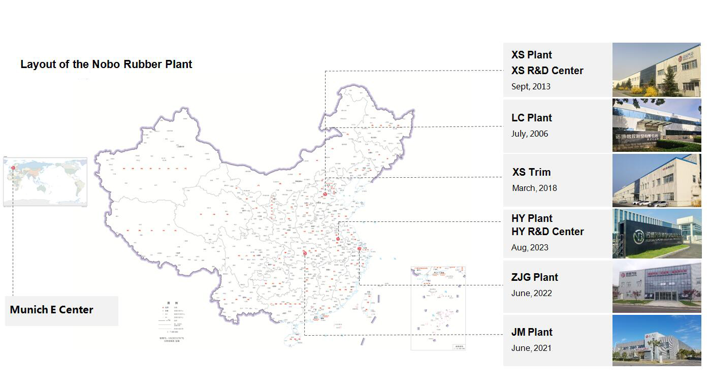 Nobo Rubber Production Co., Ltd is Located in the core area of Beijing-Tianjin-Hebei economic circle, and covering rubber AVS, WS and AL trim parts, Strive to supply exquisite and reliable automotive rubber products to global clients, present comfortable and quite driving space.