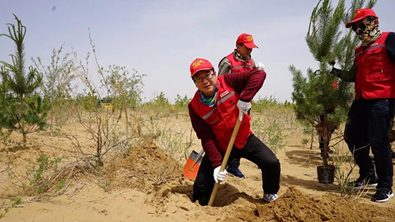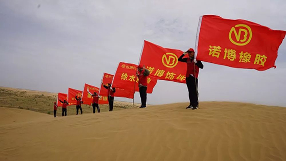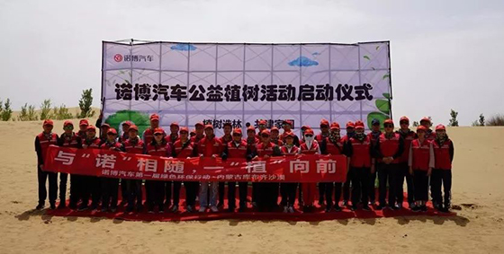 5月18日,诺博汽车总公司组织诺博橡胶等7 家分子公司、事业部实施的“第 1 届绿色环保公益”活动在内蒙古库布齐沙漠举行。公司高层管理人员及技术专家共同参加本次活动,亲手种植百余棵樟子松,建立起一条防风治沙林带。