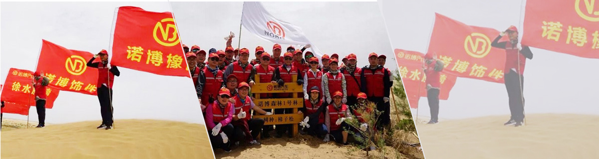 诺博橡胶启动“绿色环保公益”活动,实施的“第 1 届绿色环保公益”活动在内蒙古库布齐沙漠举行,公司高层管理人员及技术专家共同参加本次活动,亲手种植百余棵樟子松,建立起一条防风治沙林带。在坚持绿色生产的同时,更以行动为保护绿色地球、保护人类生存的环境发声,践行环保理念,做好环保事业,构建绿色中国梦,履行企业社会责任。