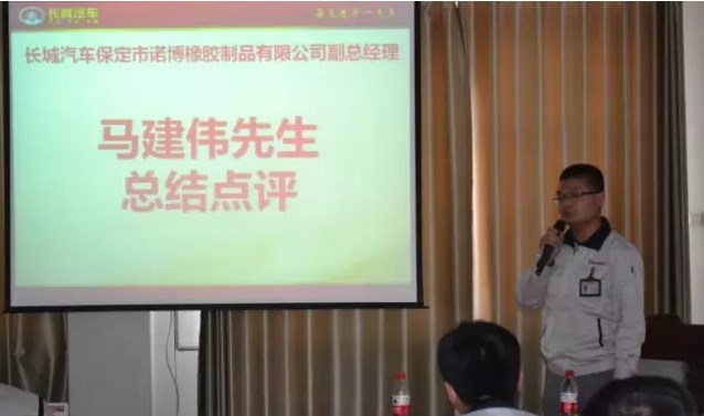 2015年4月24日,经过一个多月紧锣密鼓的准备,橡胶模块第一届质量经营零缺陷工程总结大会终于顺利召开!橡胶模块各高层领导,保定诺博及徐水诺博各部门部长、科长,品质管理本部本部长于海霞女士,五家供应商总经理、技术/品质部长及顾客代表参加了会议。